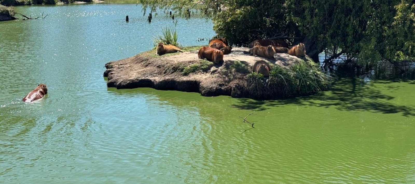 What I found funny is that there are fences put up. Presumably to keep animals in and people out, but some of the animals completely disregard those fences. Peacocks and geese particularly just went wherever they pleased, regardless of the fences. Not to mention that you’ll find capybaras throughout the park.