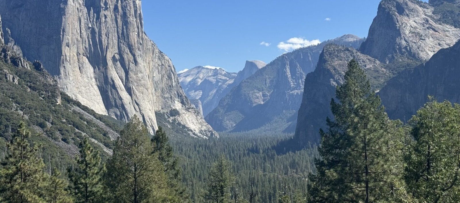 The parking lot is pretty big, but you may still have to hunt for a spot. From the parking lot, you’ll have to walk a short distance to get out to the viewpoints. But once there, there are so many different angles of the surrounding mountains, including Half Dome. It’s pretty incredible.